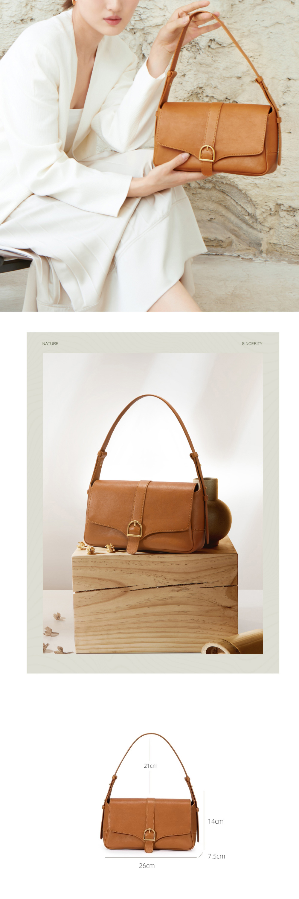 Baguette leather vintage ladies small square bag armpit bag